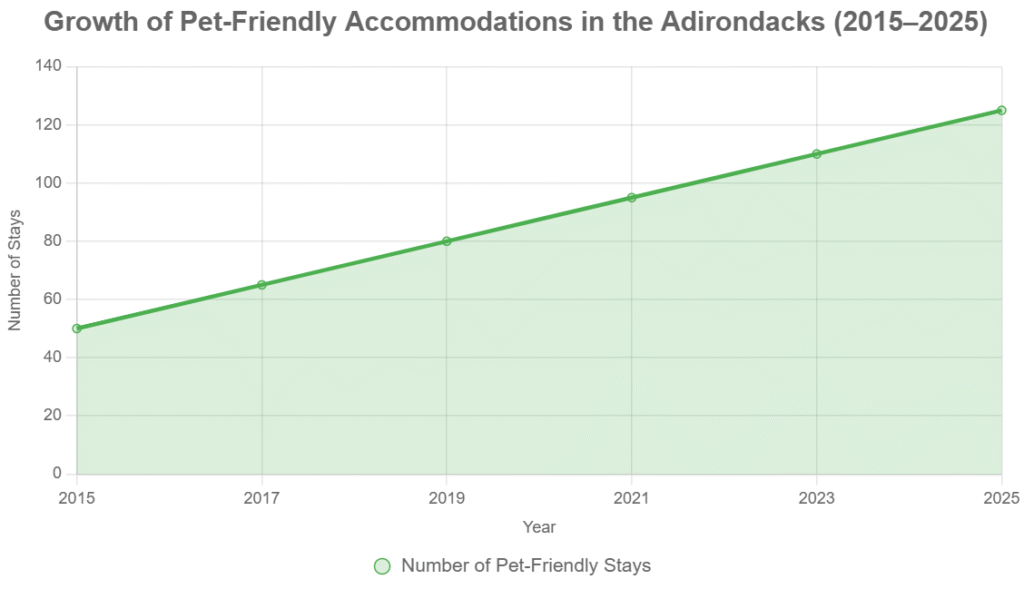 Data backs the buzz. Pet travel in the U.S. hit $2.8 billion in 2025, with the Adirondacks seeing a 15% jump in dog-friendly bookings. Visitors rave: “Our golden retriever was treated like royalty,” says one TripAdvisor review. Another notes, “Trails everywhere, and everyone smiles at your pup.”
